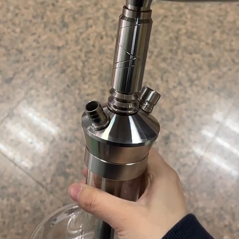This modern hookah features a minimalist design with a clear glass base and high‑grade stainless‑steel stem for exceptional durability and stability. Its precision‑engineered components ensure smooth airflow and a clean smoking experience. Easy to assemble and clean, it’s ideal for both home use and hookah lounges, combining style, performance, and quality craftsmanship in one elegant setup.
