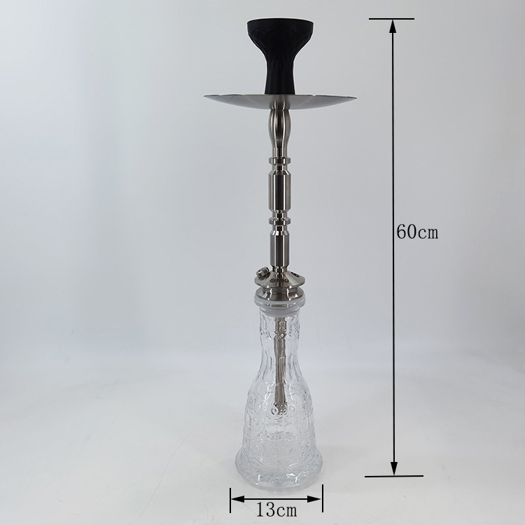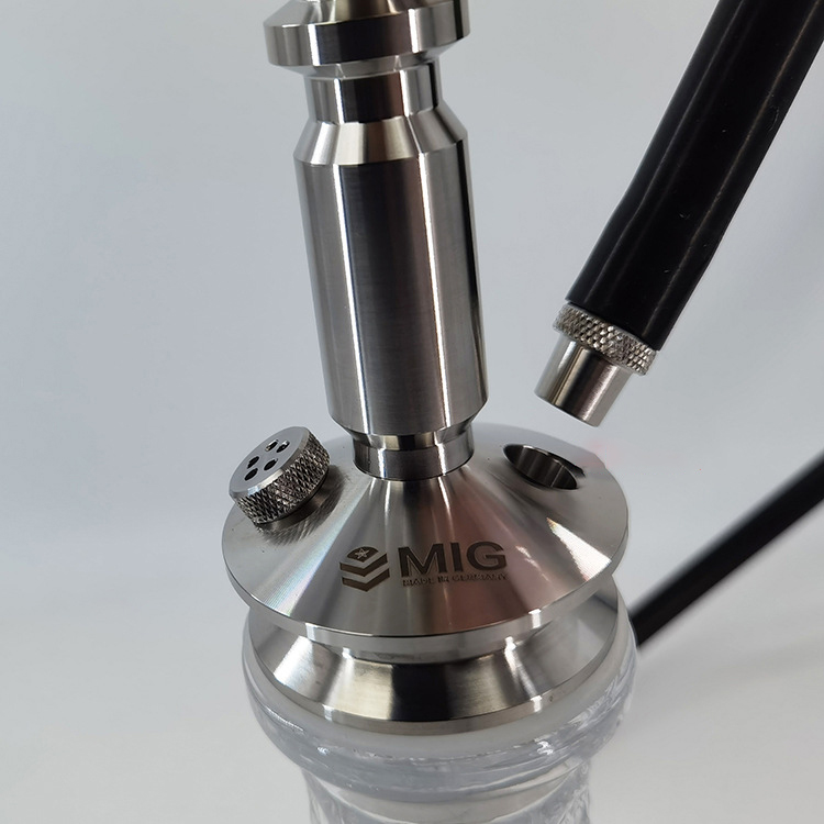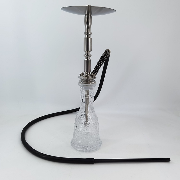 This hookah features a clear embossed glass base paired with a precision‑crafted stainless‑steel stem for a sleek, elegant appearance. It offers excellent stability and airtight performance, ensuring a smooth smoking experience. Perfect for home relaxation or social gatherings, it reflects refined style and quality craftsmanship.