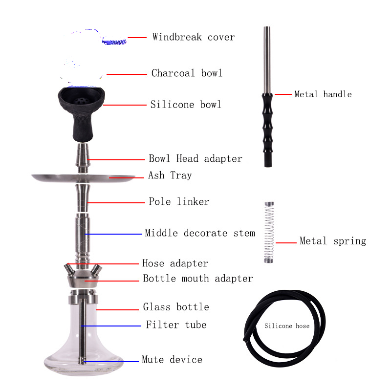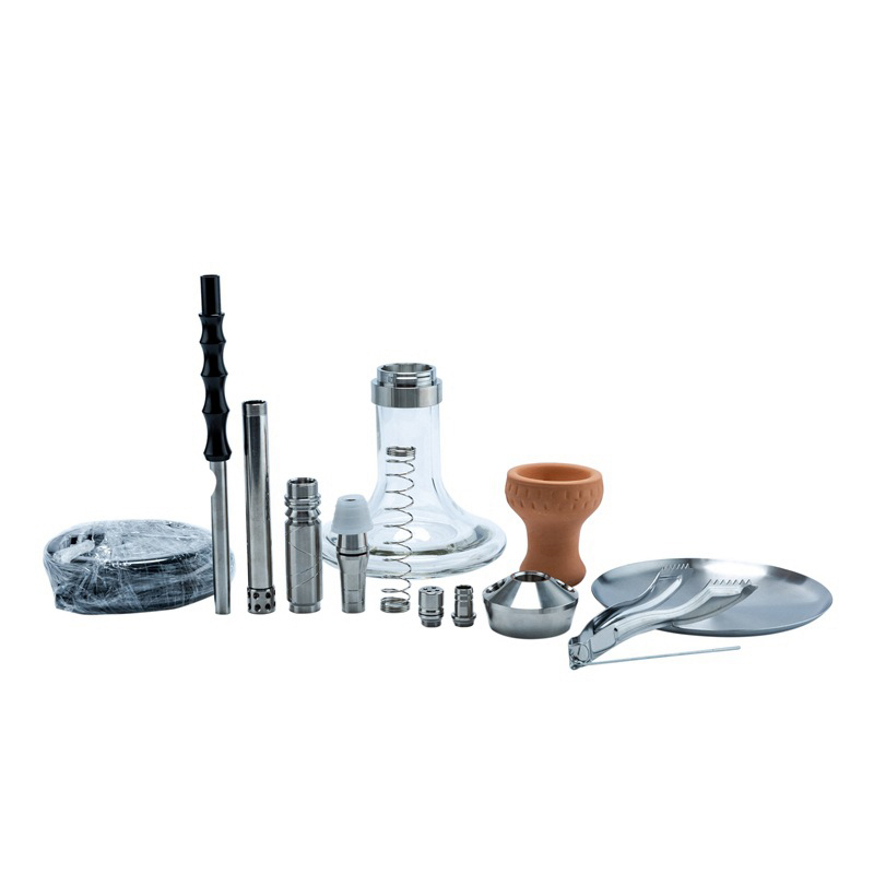 This modern hookah features a minimalist design with a clear glass base and high‑grade stainless‑steel stem for exceptional durability and stability. Its precision‑engineered components ensure smooth airflow and a clean smoking experience. Easy to assemble and clean, it’s ideal for both home use and hookah lounges, combining style, performance, and quality craftsmanship in one elegant setup.